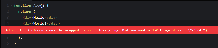 정상적으로 사용하기 위해서는 <div></div>, <fragment></fragment>, <></> 로 다시 한번 감싸줘야 한다.
